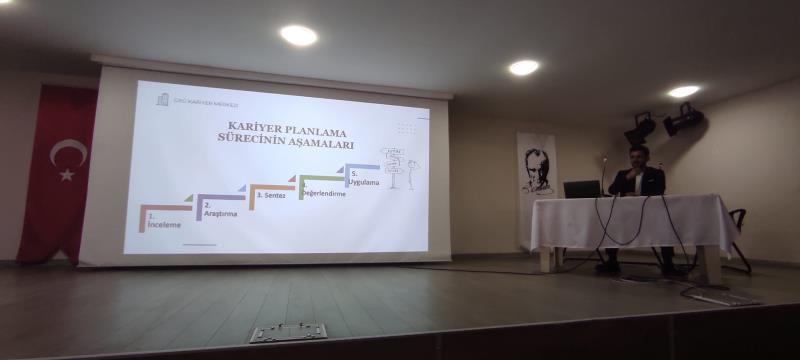 Kariyer Yönlendirme ve Bilgilendirme Uygulama ve Araştırma Merkezi Müdürlüğü tarafından, öğrencilerimizin kariyer gelişimlerine katkı sunmak ve Kariyer Merkezi faaliyetleri hakkında bilgilendirme yapma amacıyla 29.09.2025 Pazartesi günü 14.00’te Şebinkarahisar Meslek Yüksekokulu Konferans Salonunda yüz yüze gerçekleşelen “Kariyer Rotası” başlıklı kariyer semineri düzenlendi.